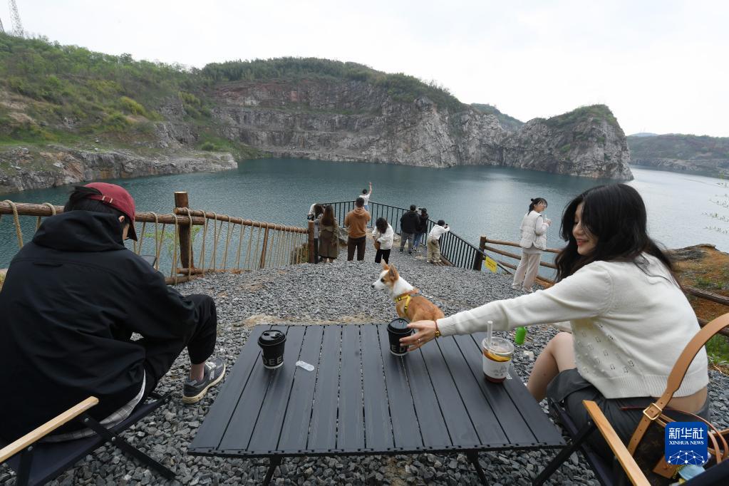 4月7日,游客在安吉县梅溪镇红庙村一咖啡馆休闲。