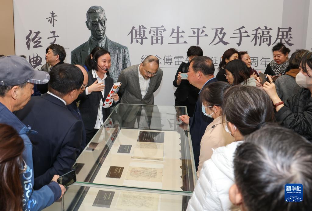 4月7日,参观者在傅雷生平及手稿展上参观。
