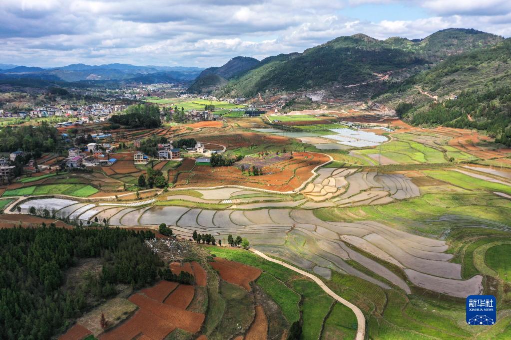 这是4月6日在贵州省岑巩县水尾镇新场村拍摄的杂交水稻制种基地(无人机照片)。