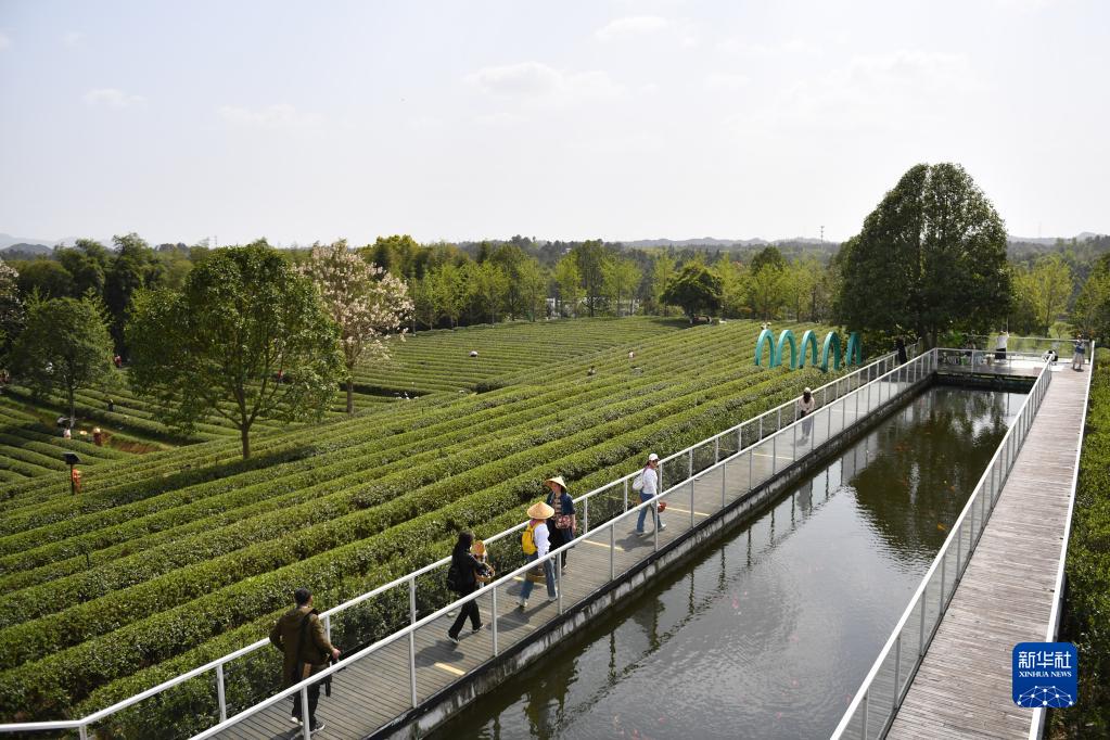 4月7日,游客在湖南省长沙市长沙县金井镇的金井茶旅融合产业园参观游玩。