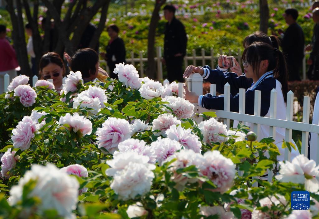 近日,“中国牡丹之都”山东省菏泽市大面积种植的牡丹陆续进入盛开期,吸引游客前来观赏。目前,菏泽牡丹拥有9大色系、10大花型、1280个品种,全市牡丹种植面积超过40万亩。