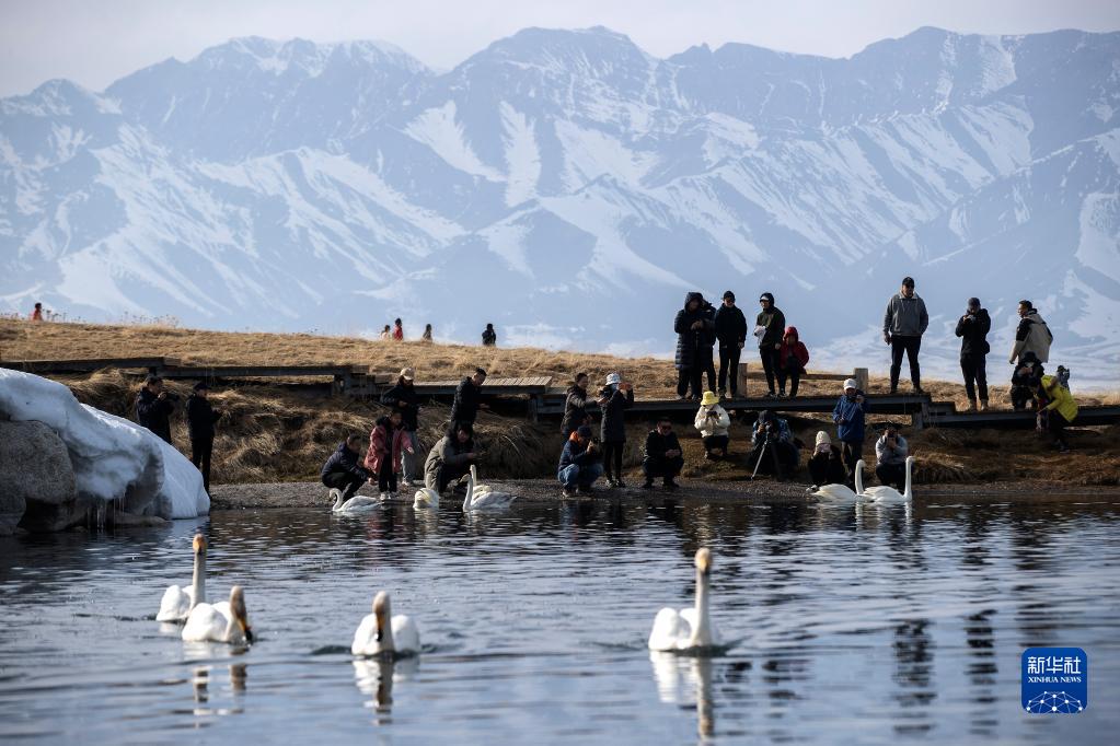 赛里木湖是新疆海拔最高、面积最大的高山湖泊,被誉为“大西洋最后一滴眼泪”,四季景色宜人、美不胜收。这里动植物种类丰富,人们经常可以看到白天鹅、北山羊、狐狸等动物的身影,并与它们近距离互动,呈现出一幅人与自然和谐相处的美好画面。