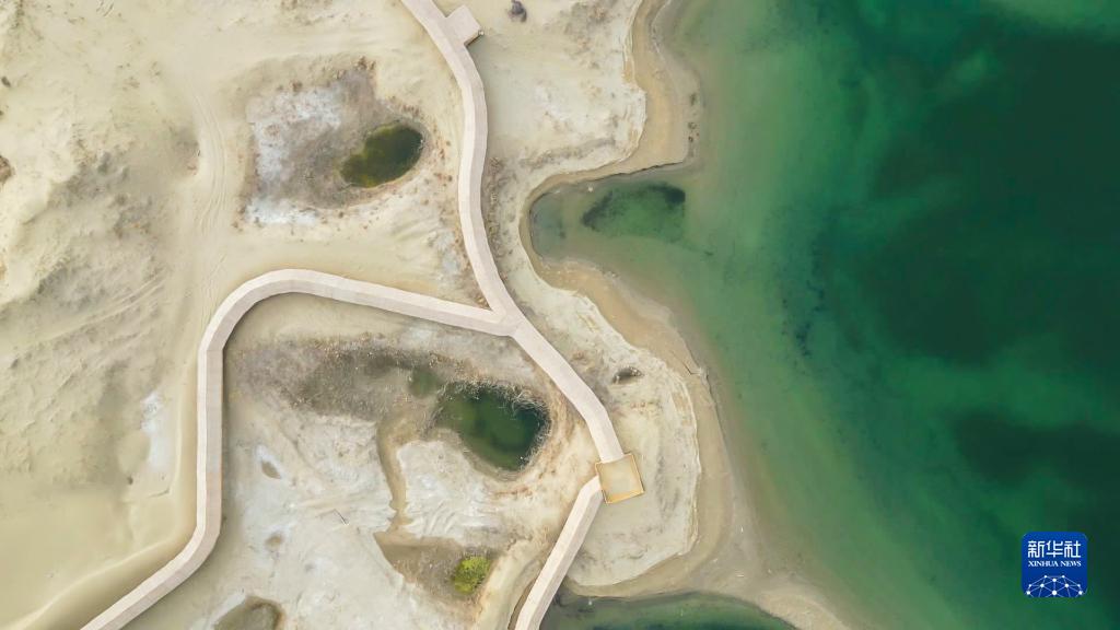 3月31日在罗布人村寨景区拍摄的神女湖(无人机照片)。