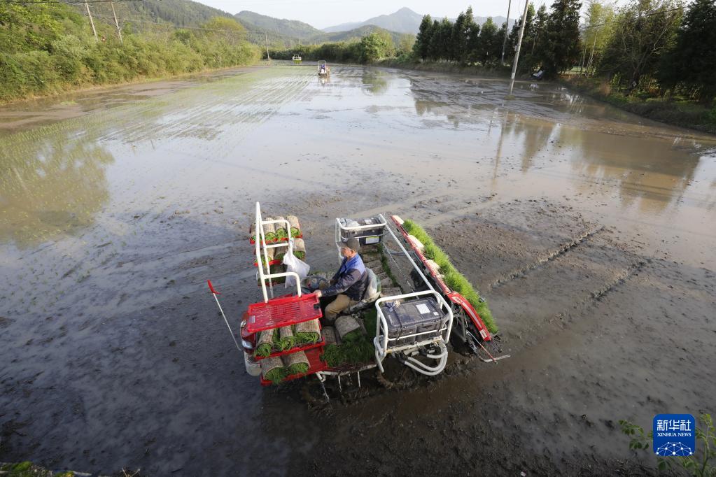 4月7日,插秧机在浦城县石陂镇开展再生稻插秧作业。