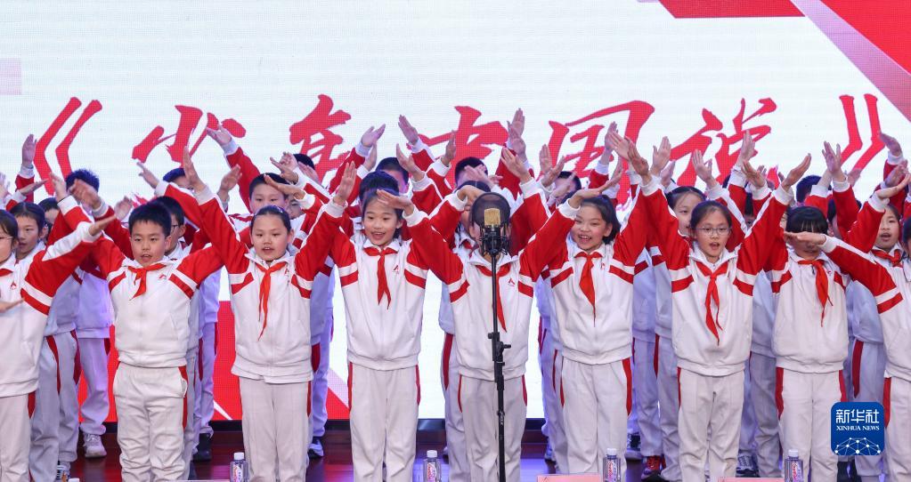 4月7日,人大附中分校小学部的学生表演《少年中国说》。