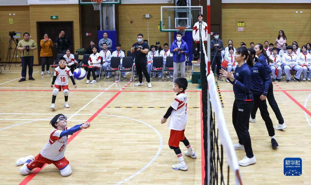 4月6日,人大附中分校小学部排球队和香港女排进行友谊赛。