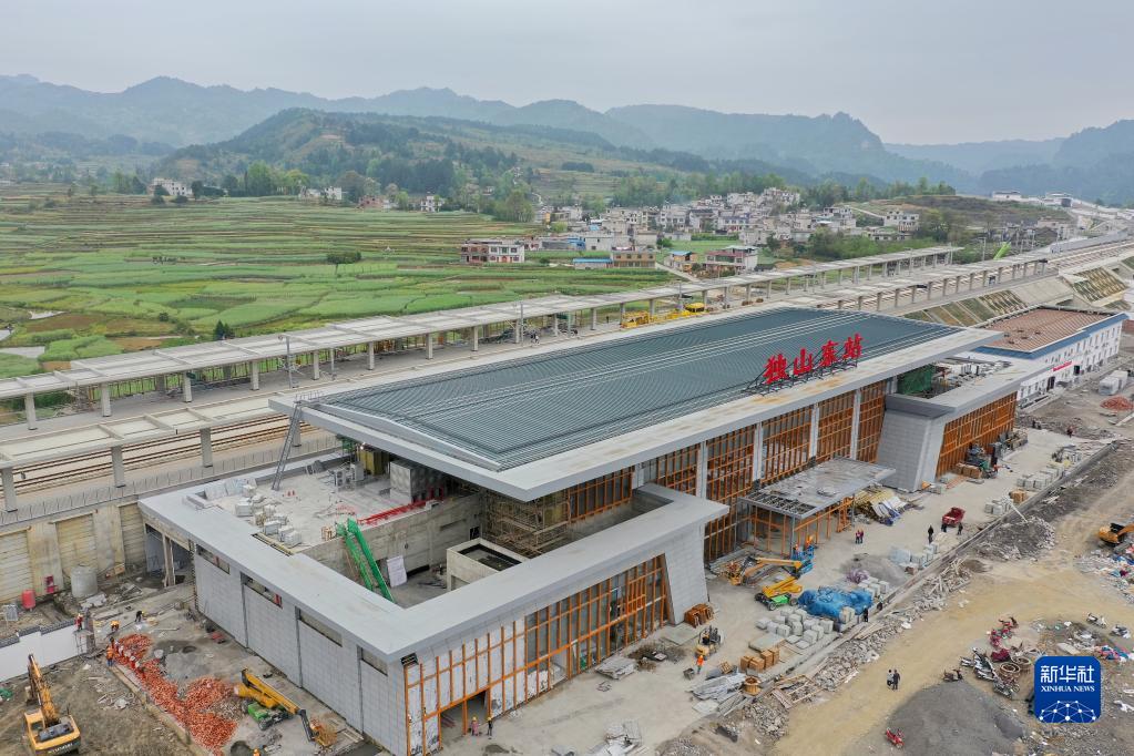4月9日,独山东站在紧张施工当中(无人机照片)。