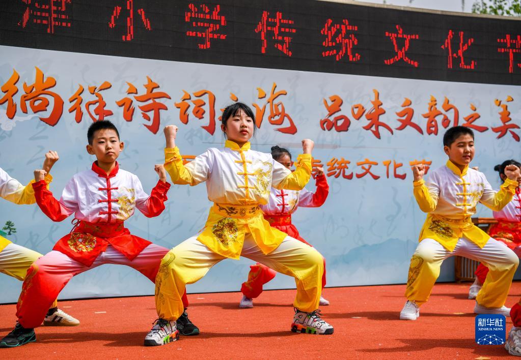 当日,以“徜徉诗词之海,品味文韵之美”为主题的传统文化节在天津小学举行。学生们在老师的指导下参与国学朗诵、京剧选段表演、书画展示等活动,感受传统文化的魅力。