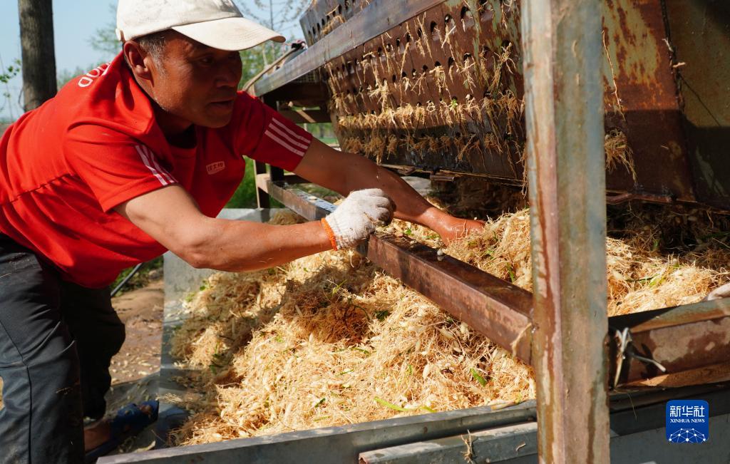 4月10日,在山东省单县高老家乡,麦冬种植户在清洗收获的麦冬。