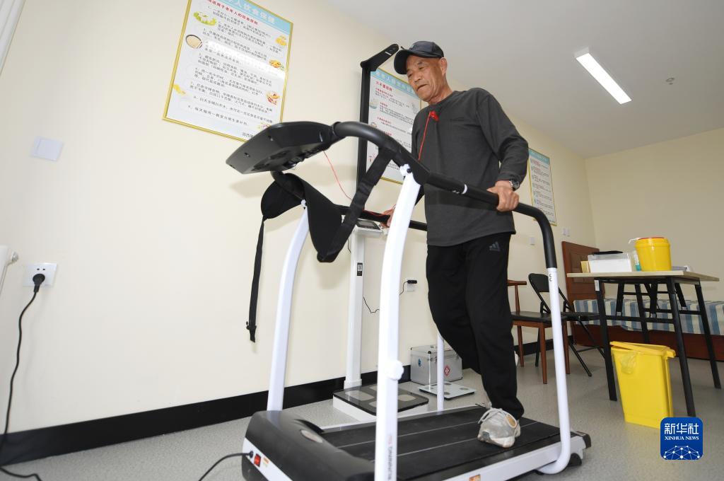 老年人在河北雄安新区容西第一养老驿站进行锻炼(4月10日摄)。