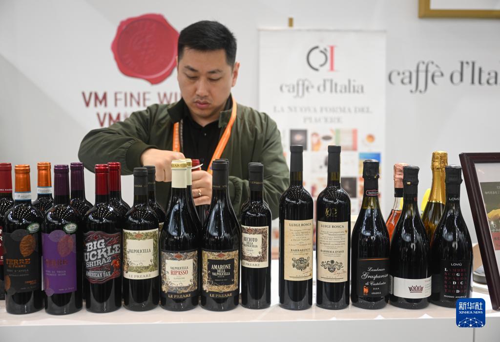4月11日在消博会意大利企业馆内拍摄的红酒产品。