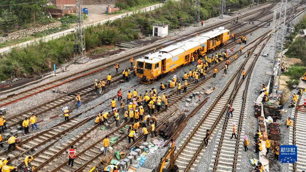 当日,广西钦州港站组织上百名职工利用6小时的“天窗期”,更换车站“咽喉”位置磨损严重的铁轨,确保西部陆海新通道铁海联运上量不受影响。