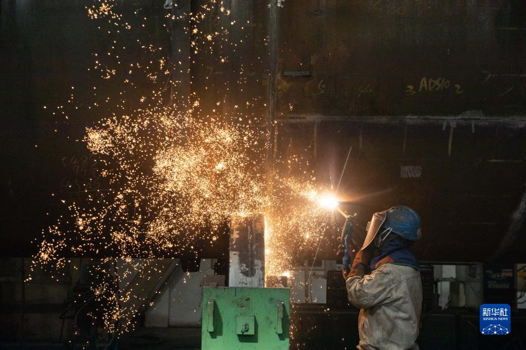4月12日,工人在哈电集团哈尔滨锅炉厂有限责任公司生产车间内作业。