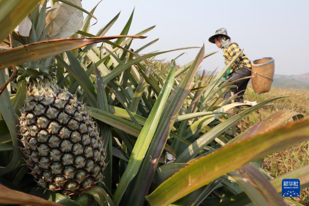 近日,云南省西双版纳傣族自治州景洪市凤梨种植基地的凤梨成熟,工人忙着采摘、分拣、装箱销往市场。近年来,景洪市因地制宜引进凤梨种植企业,丰富热带水果品种,带动当地农民增收。