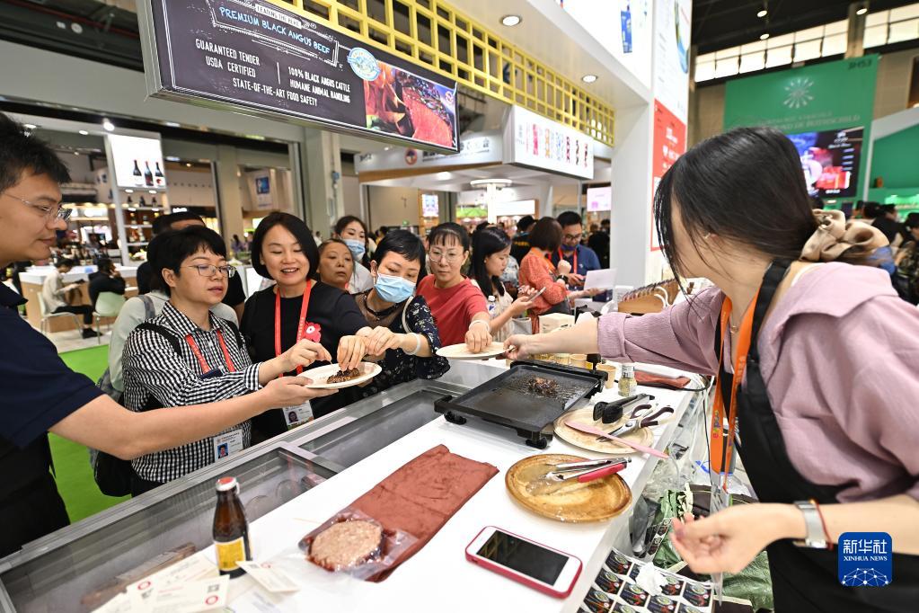 在海口举行的第三届中国国际消费品博览会上,来自全球的优质农产品和特色美食云集。观众在消博会上品尝美食,享受舌尖上的盛宴。
