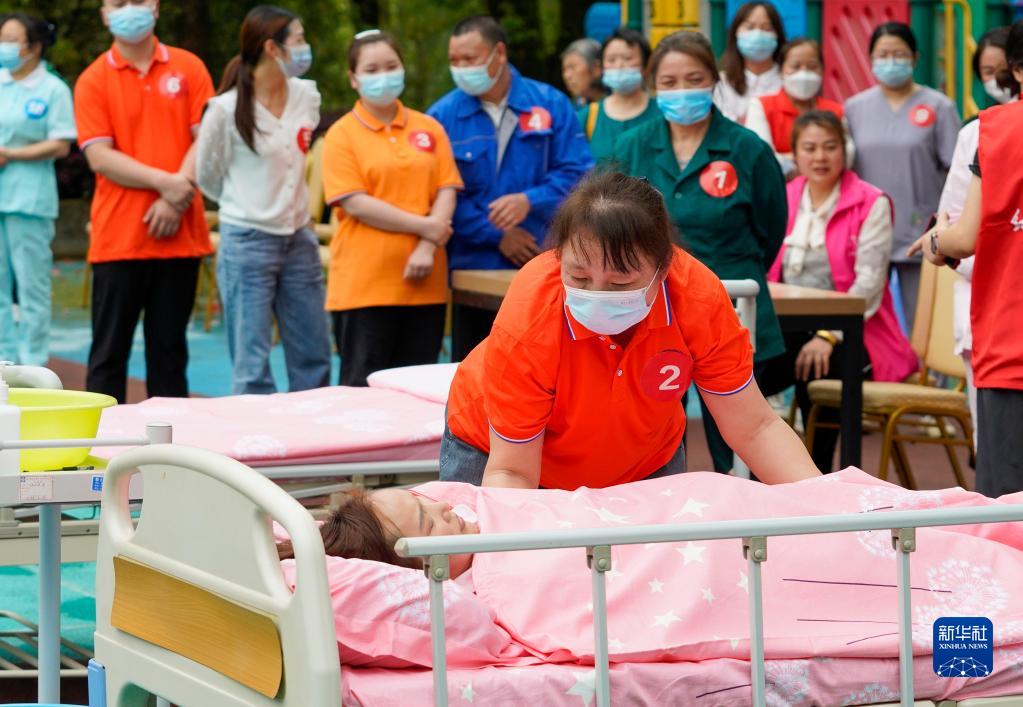 当日,重庆市沙坪坝区“红岩·银龄”养老护理员大赛暨“助餐、助浴、助洁”服务技能大赛决赛正式开赛,来自当地数十家养老机构和企业的80多名养老护理员就养老日常护理、养老保洁、助力老年人沐浴等多个养老服务行业的技能项目展开角逐。