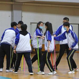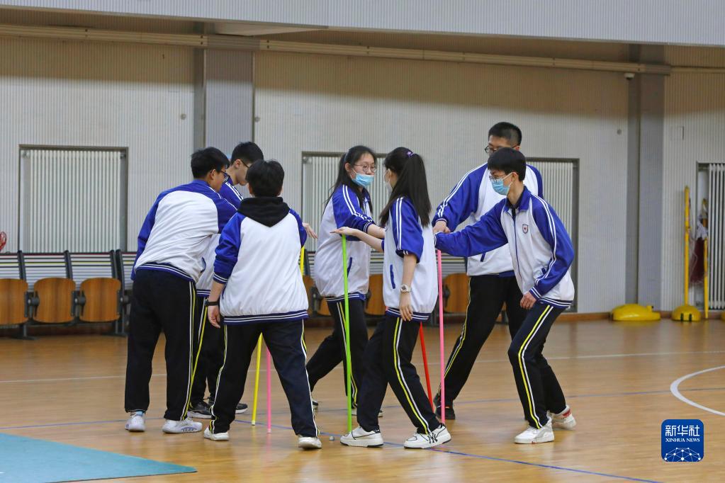 4月12日,大连市第十一中学学生在体育馆上心理团体辅导课。