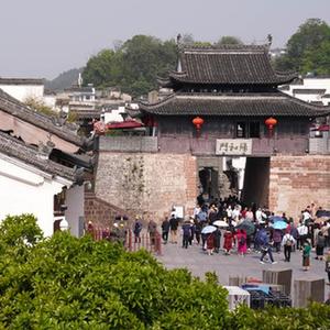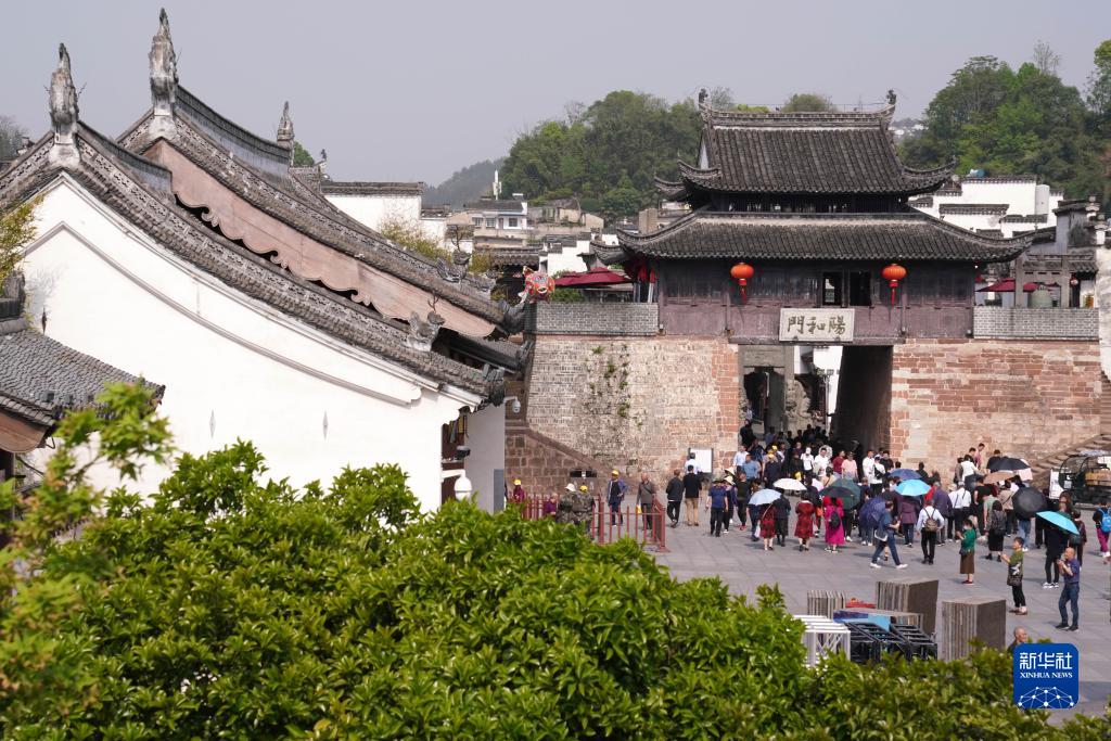 4月12日,游客游览安徽省黄山市歙县的徽州古城景区。