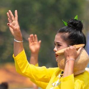 当日,云南省德宏傣族景颇族自治州芒市2023年泼水狂欢节开幕,人们相互泼洒代表幸福、吉祥的清水,表达着相互间的无限祝福。