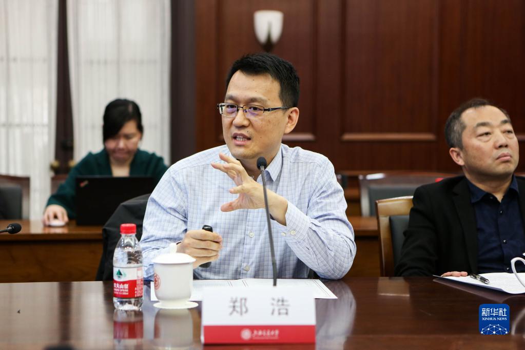 4月12日,上海交通大学物理与天文学院教授郑浩(前排左一)介绍“实验证实超导态‘分段费米面’”成果。