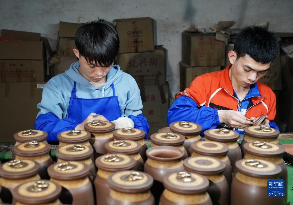 4月11日,在广西钦州市,员工在坭兴陶生产车间工作。
