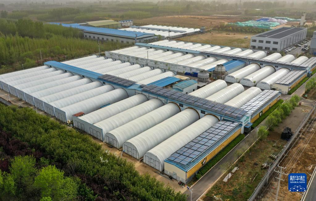 这是4月12日拍摄的山东省泰安市永乐食用菌科技产业园外景(无人机照片)。