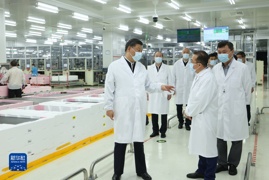 4月10日至13日,中共中央总书记、国家主席、中央军委主席习近平在广东考察。这是12日下午,习近平在乐金显示广州制造基地察看生产组装流程。