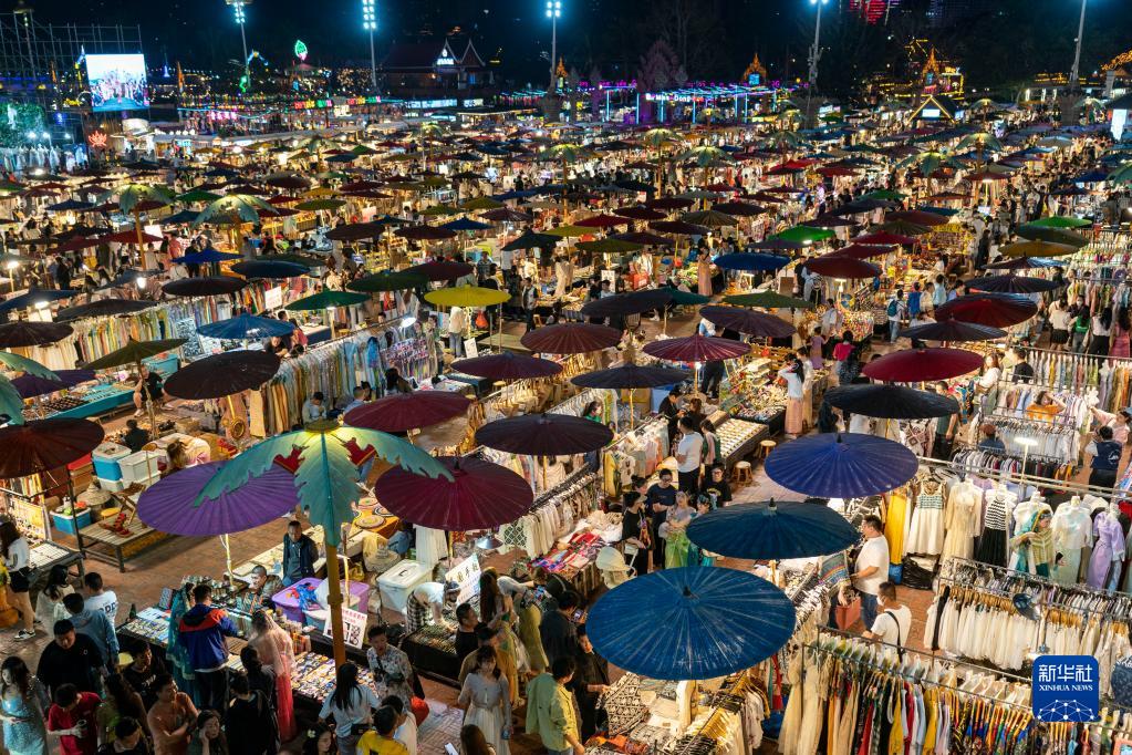 这是云南省西双版纳景洪市告庄西双景星光夜市(2023年2月12日摄)。