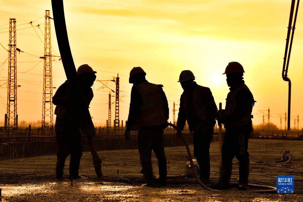 4月13日,工人在包银高铁包头段首座有砟轨道钢筋混凝土刚构连续梁建设现场作业。