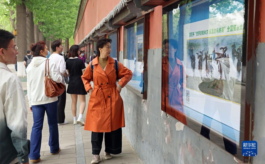 4月13日,观众在北京北海公园观看苏克杯“世界的帕米尔 永远的玛纳斯”全国摄影大展。
