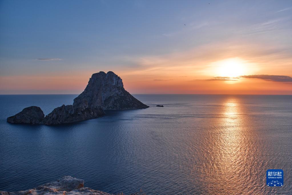这是4月9日在西班牙巴利阿里群岛伊维萨岛拍摄的日落。