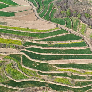 近日,甘肃省平凉市崇信县锦屏镇纵横交错的梯田色彩斑斓,宛如春日大地“调色板”。