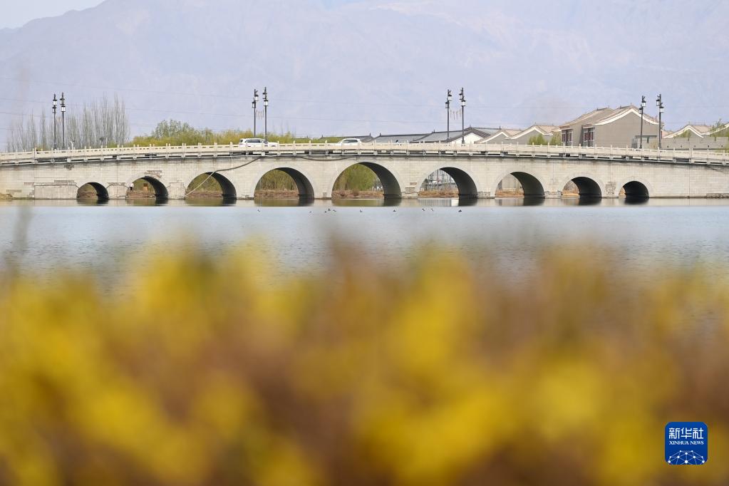 这是4月13日拍摄的张掖市芦水湾生态景区内春日景色。