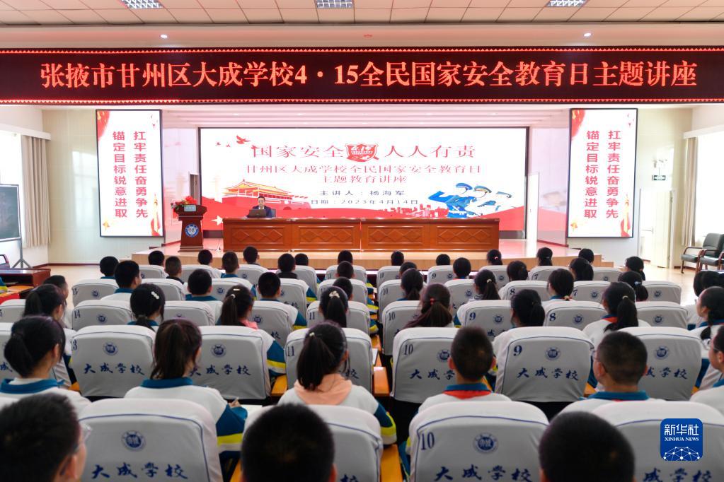 4月14日,在张掖市甘州区大成学校,学生们参加全民国家安全教育日主题讲座。