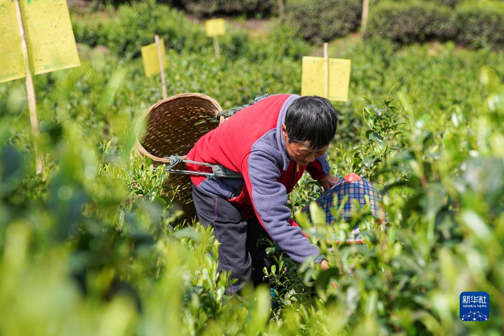4月14日,在安徽省黄山市黄山区新明乡猴坑村,茶农采摘太平猴魁鲜叶。