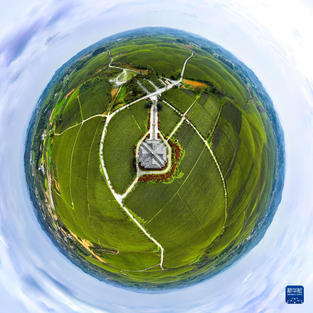 4月4日拍摄的遵义市湄潭县永兴镇“万亩茶海”(无人机全景照片)。