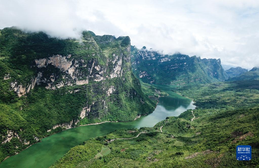 贵州省北盘江大峡谷国家湿地公园风貌(2018年8月7日摄,无人机照片)。