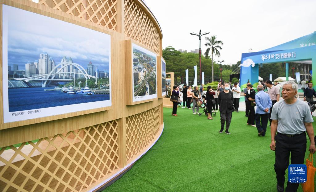 4月14日,在广东佛山市文华公园,观众在观看鄂尔多斯主题影展。