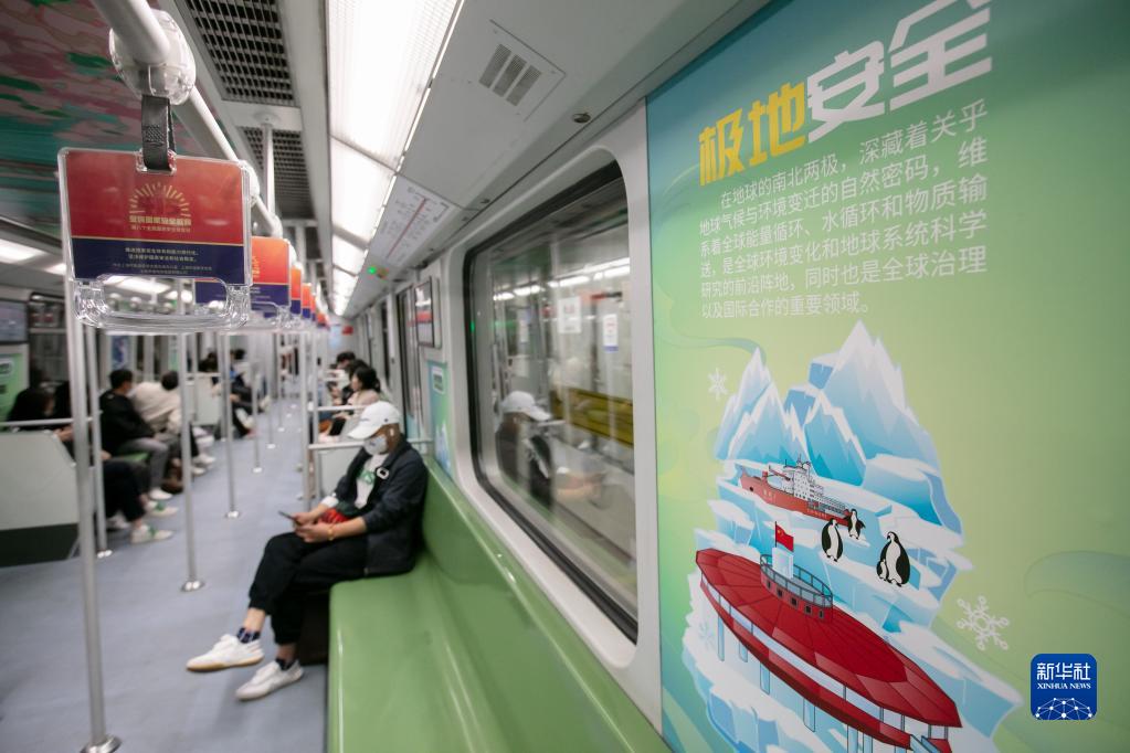 这是4月15日拍摄的上海地铁“国安号”主题列车车厢内景,车厢内外以主题海报等形式宣传国家安全知识。