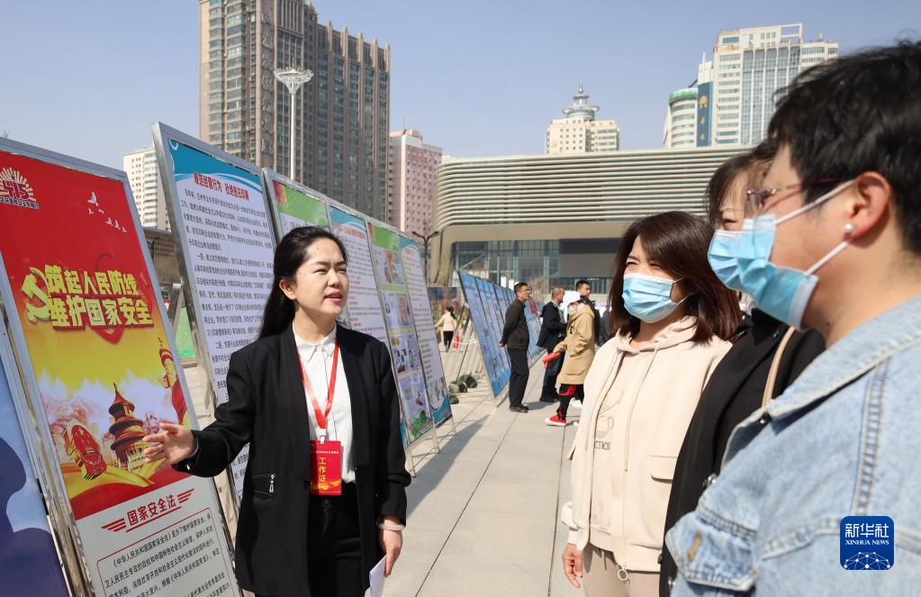 4月15日,在甘肃省兰州市举行的全民国家安全教育日宣传活动现场,工作人员为市民讲解国家安全知识。