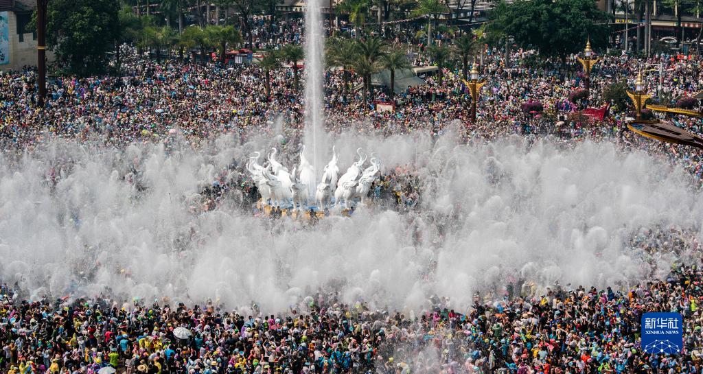 当日,云南省西双版纳傣族自治州举行傣历新年取水仪式及泼水狂欢,数万名各族群众和游客在景洪市用相互泼水的方式互送祝福、传递欢乐。