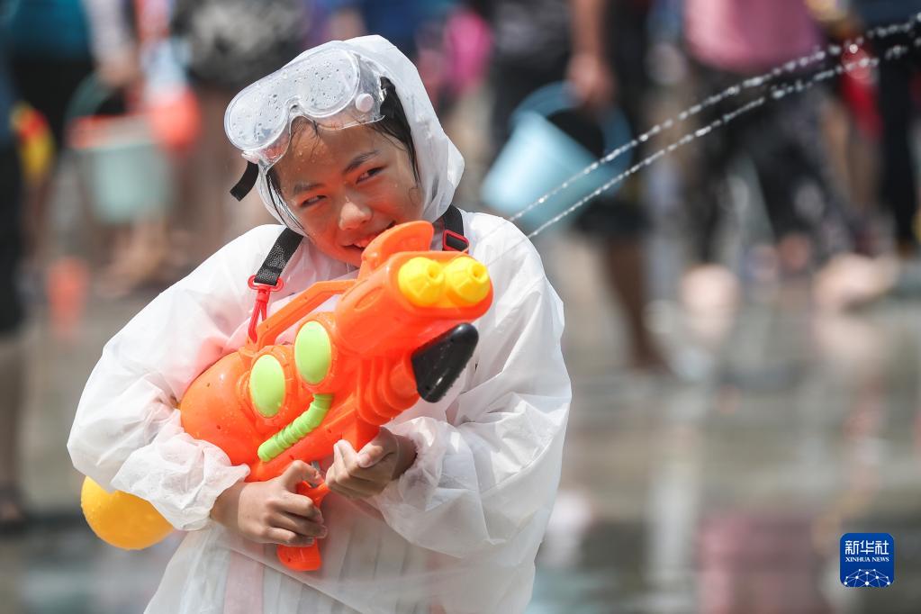 4月15日,人们在云南省西双版纳傣族自治州景洪市泼水广场泼水狂欢。
