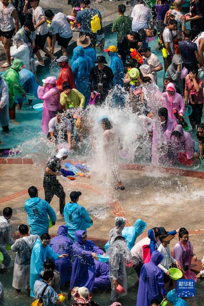 4月15日,人们在云南省西双版纳傣族自治州景洪市泼水广场泼水狂欢。