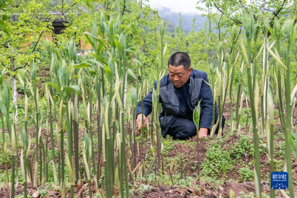 4月14日,在重庆市石柱县中益乡一处黄精种植基地,村民在除草。