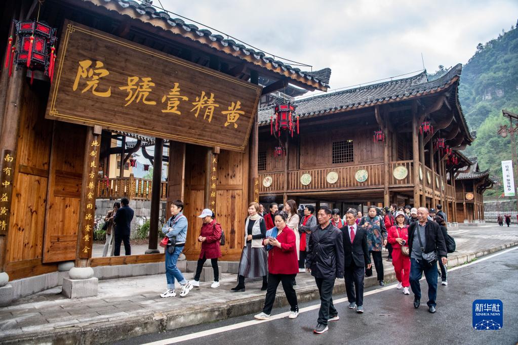 4月13日,在重庆市石柱县中益乡,游客在参观游玩。