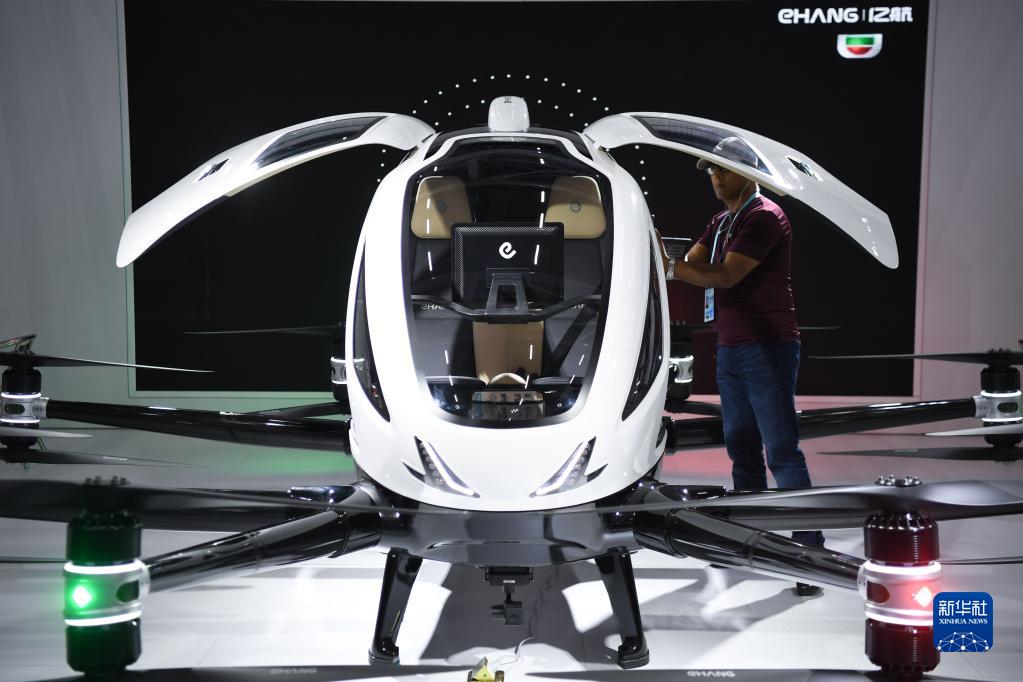 这是广交会新设置的新能源及智能网联汽车展区展示的飞行器(4月15日摄)。