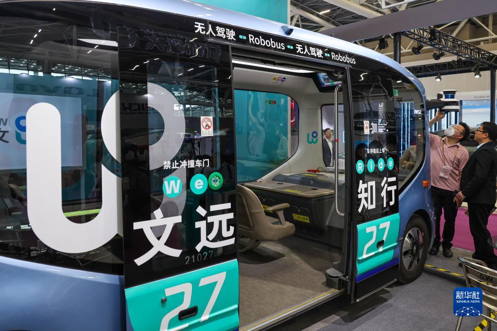 这是广交会新设置的新能源及智能网联汽车展区展示的文远知行无人驾驶小巴(4月15日摄)。