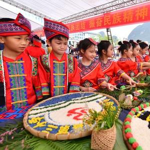 当日,广西河池市大化瑶族自治县举办“美味三月三”美食大赛,当地各族群众以糯米、七百弄鸡、山羊、河鱼等当地特色食材制作的数百道美食参加评比。