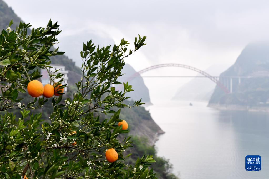眼下,有“中国脐橙之乡”美誉的三峡库区湖北省秭归县长江两岸橙花盛开,晚熟脐橙挂满枝头,花果同树的橙树与峡江景观相映如画。