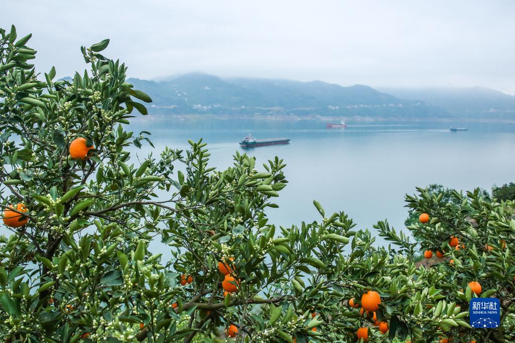 眼下,有“中国脐橙之乡”美誉的三峡库区湖北省秭归县长江两岸橙花盛开,晚熟脐橙挂满枝头,花果同树的橙树与峡江景观相映如画。